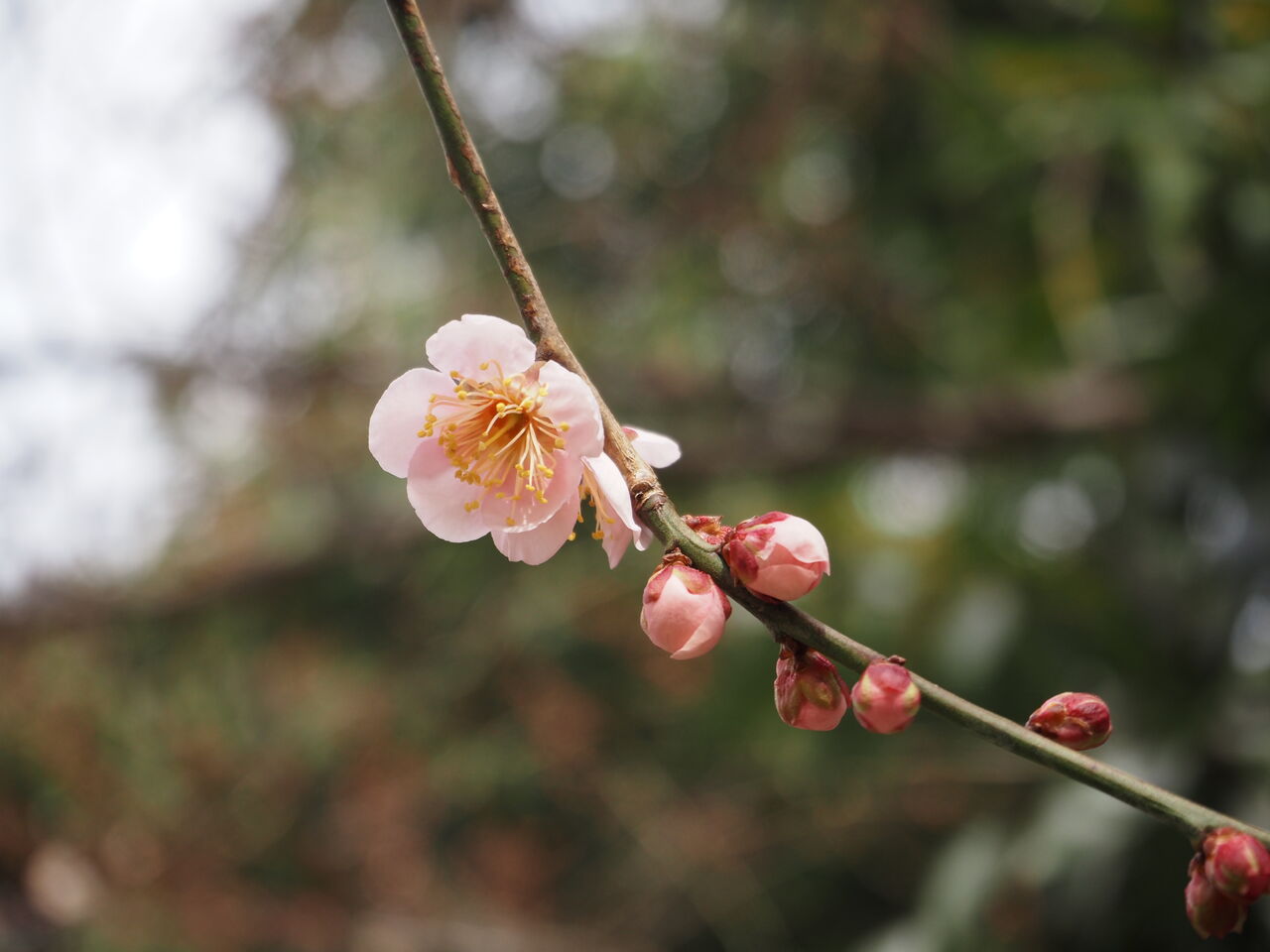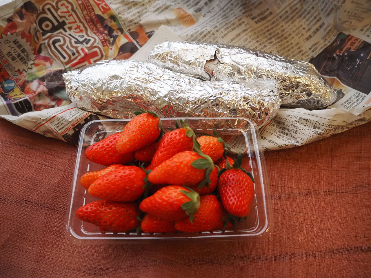 2022Feb19 神社の梅と母からの差し入れ 近くの千塚八幡神社の梅の花かわゆい「すごく甘くて美味しいんだよ」の噂を聞いて朝一番で並んで買ってきてくれた母からのいちご・・と私の大好物 焼き芋ありがたい春が近づいています